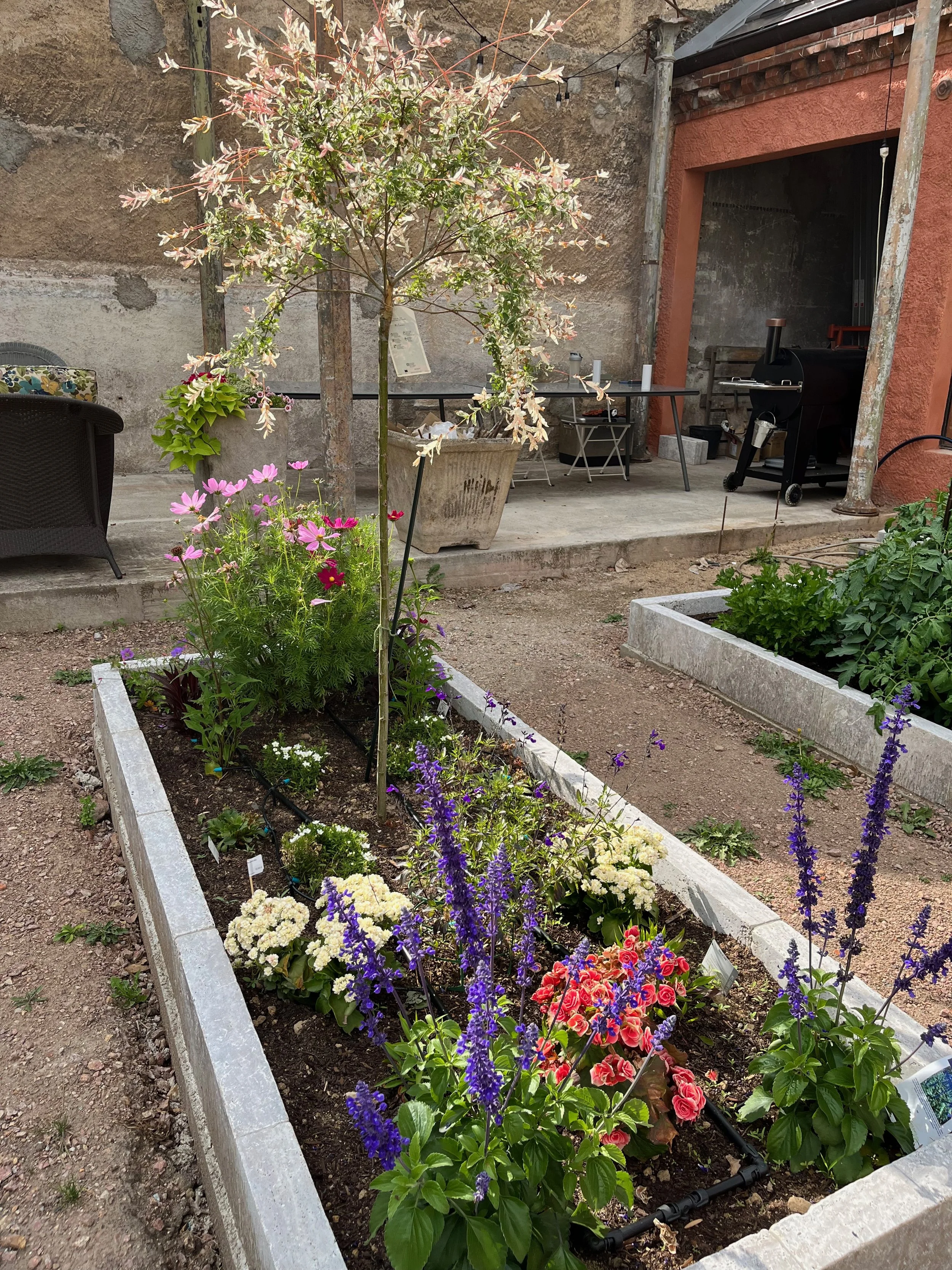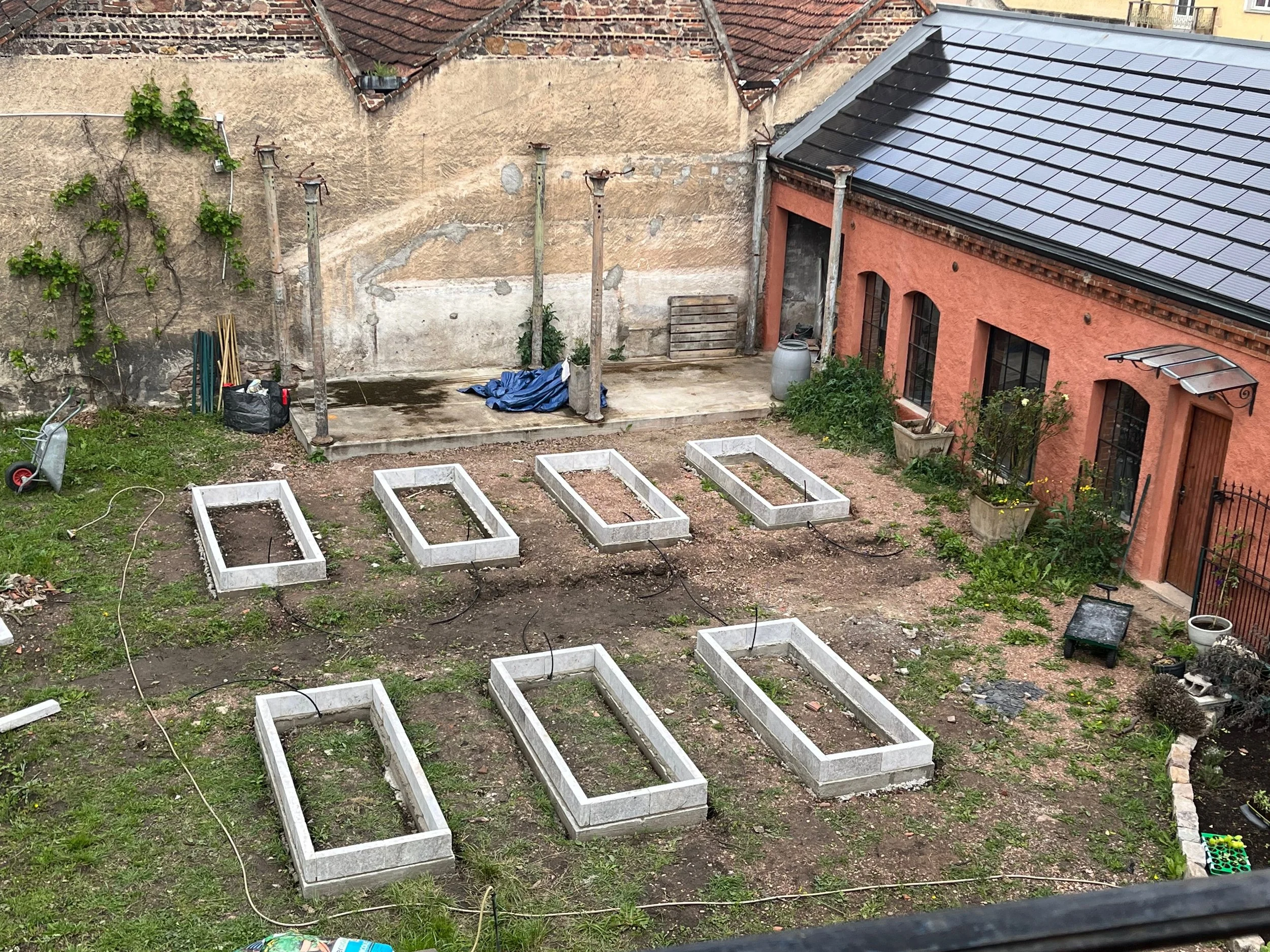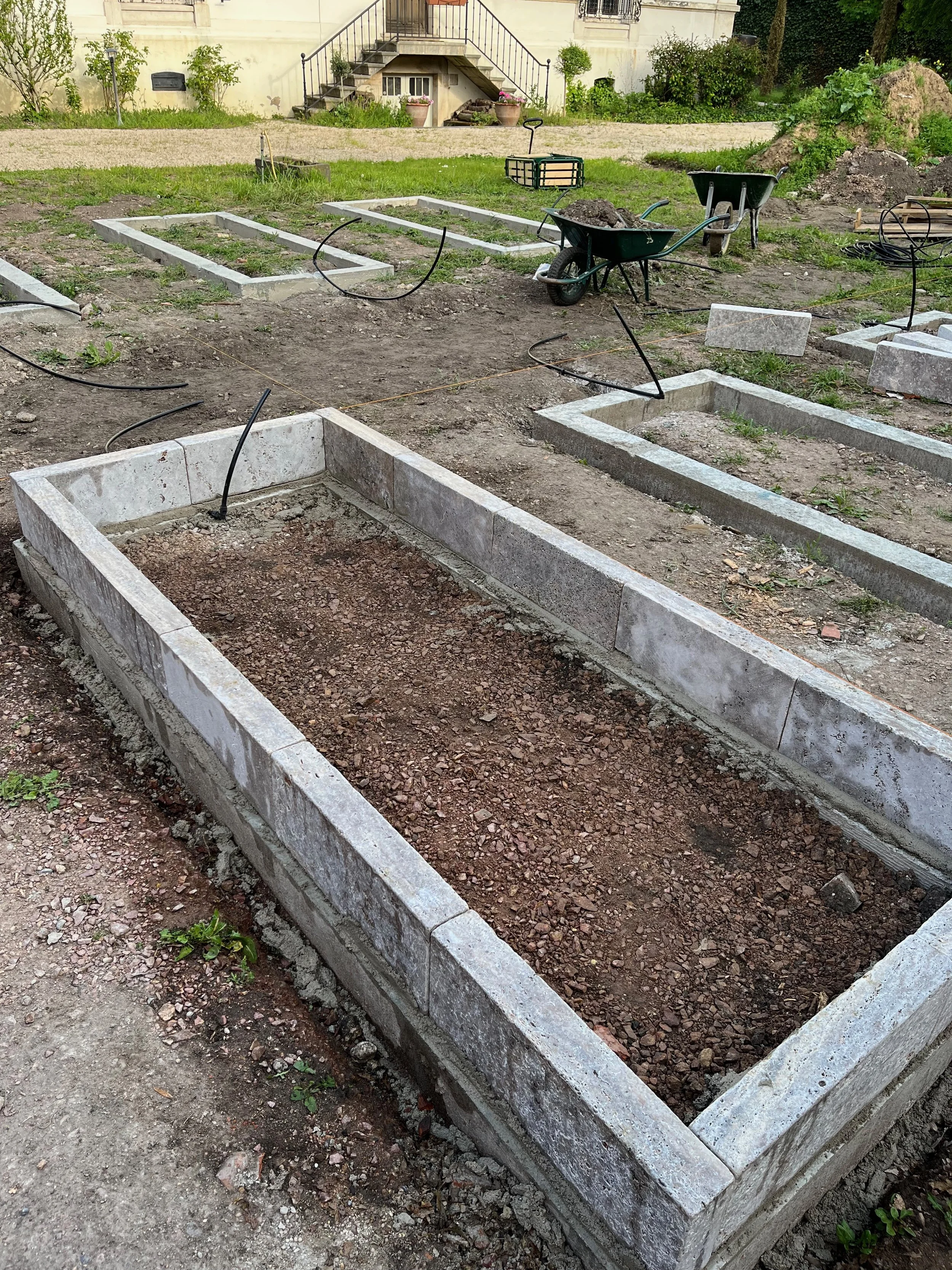 Moving on now from a clean-ish palate, we decided our first project in the garden is to build garden beds surrounded by travertine stone. Unfortunately you can’t just put the stone on its side in a rectangle form & call it a day. This project required the digging of trenches, building wooden frames, pouring concrete, laying the stone & then a bit of mortar to finish it up. Needless to say it was not a weekend job. With help from Maxime, we were able to get the concrete bit done pretty quickly - he works fast! So now we’ve built beds, filled them with plants & are harvesting some lovely crops to cook with. We still have a ways to go with this project as we want to build a path between the beds & lay down stone to help keep the weeds at bay. But this first big step is done & we thought we’d share the labors!